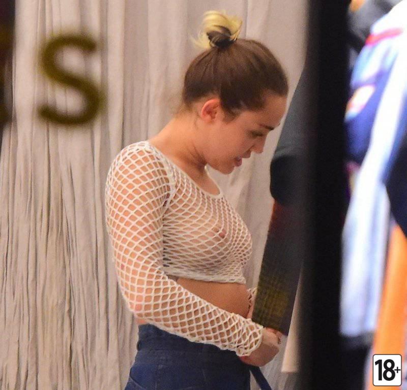 Майли Сайрус в просвечивающемся топе во время шопинга